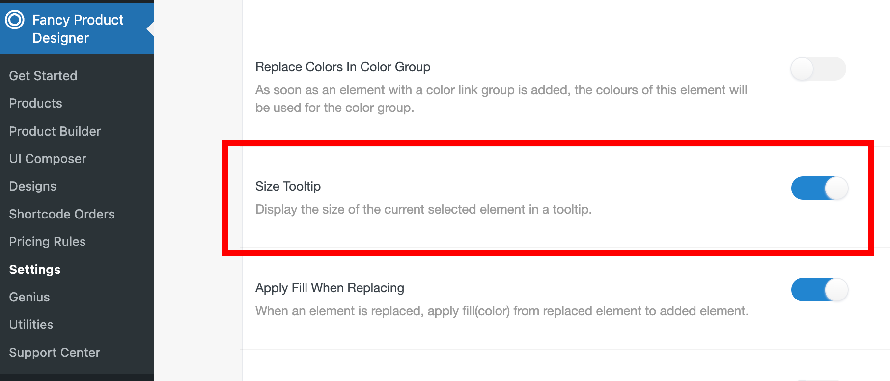 In Fancy Product Designer, it is possible to show the image size in the designer. In order to do that, you could navigate to Fancy Product Designer > Settings > Advanced > Miscellaneous, then enable the Size Tooltip option: