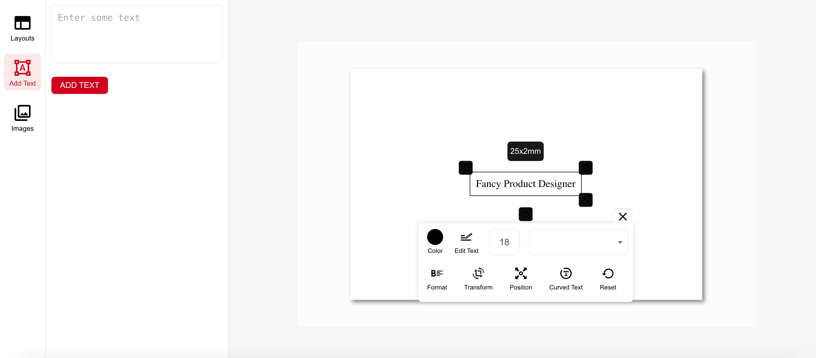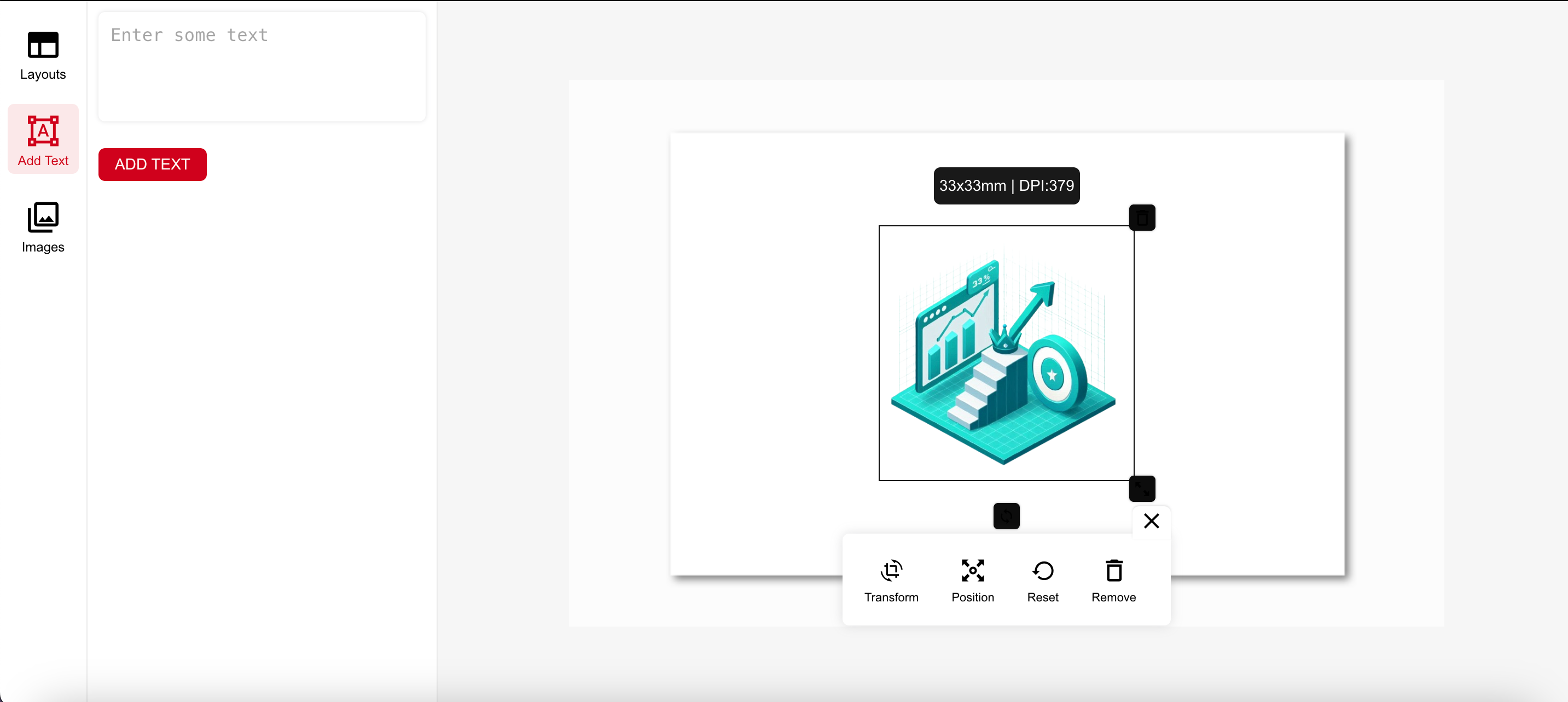 Once you enabled that option, in the product designer, you should be able to see the image size as follow: