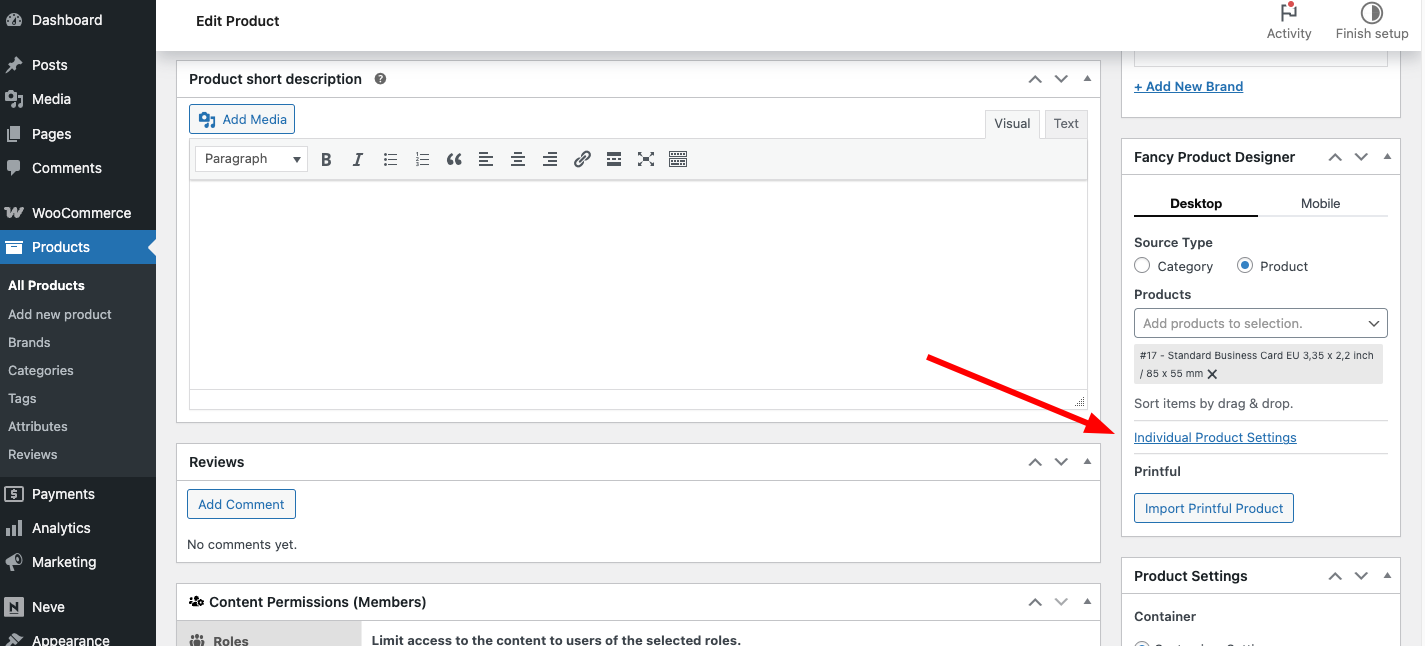 How to have different setting each product?